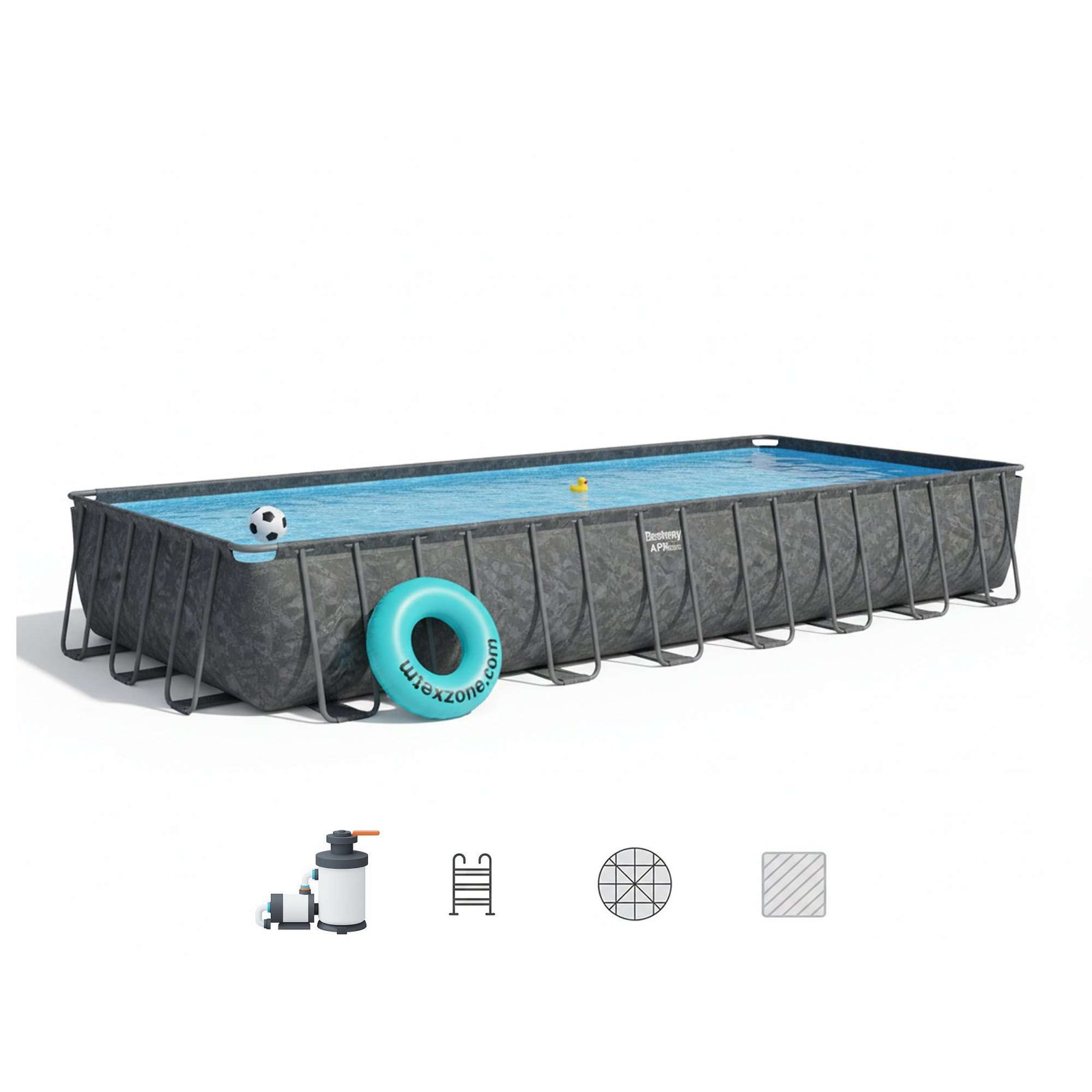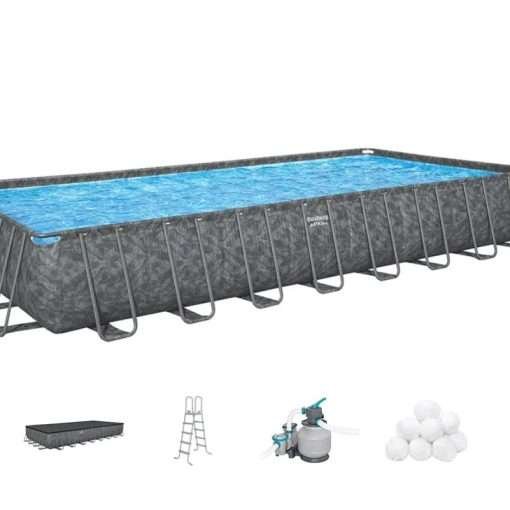 Bestway 561KJ | Size 31.4 x 16.0 x 4.33 Ft | APX Rectangular Metal Frame Portable Ready-Made Swimming Pool