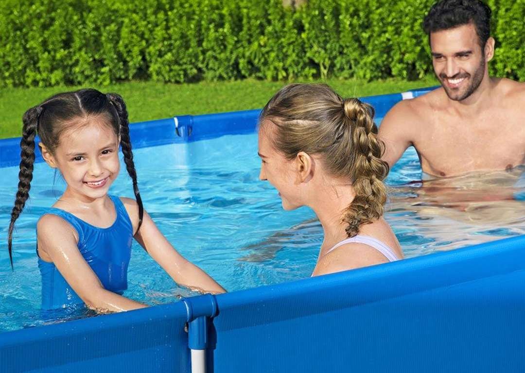 Bestway 56411 | Size 9.1 x 6.7 x 2.10 Ft | Steel Pro Rectangular Metal Frame Portable Ready-Made Swimming Pool