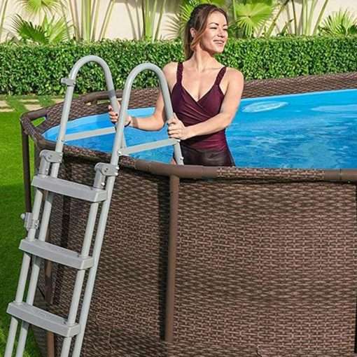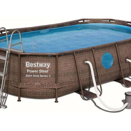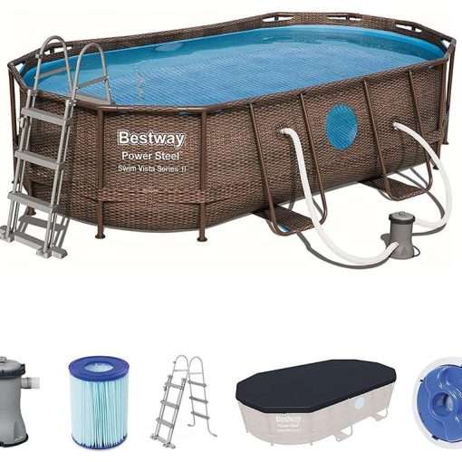 Bestway 56714 | Size 14.0 x 8.0 x 3.29 Ft | Power Steel Vista Series Oval Metal Frame Portable Ready-Made Swimming Pool