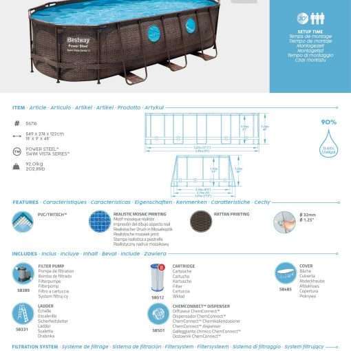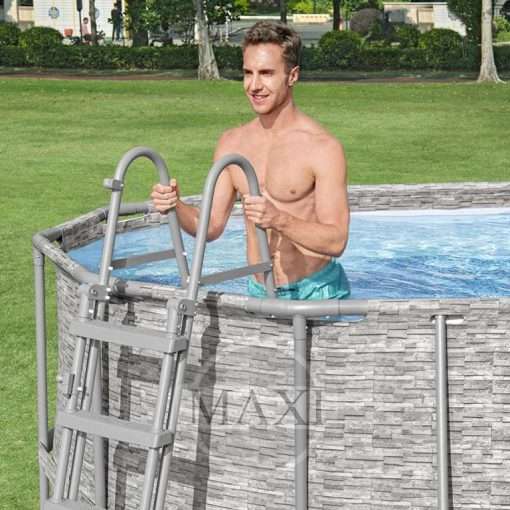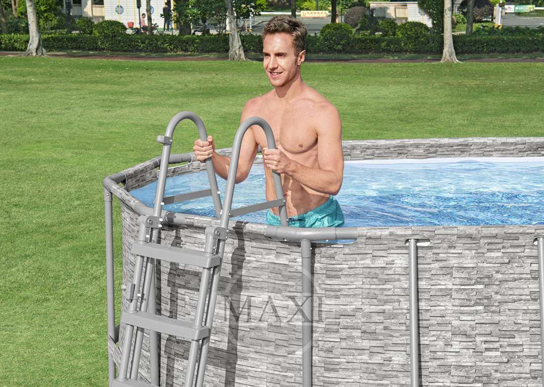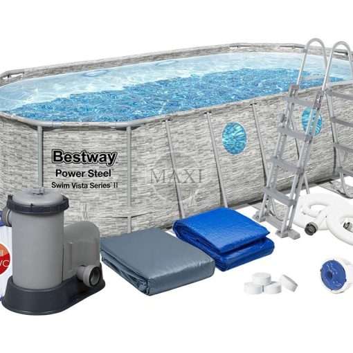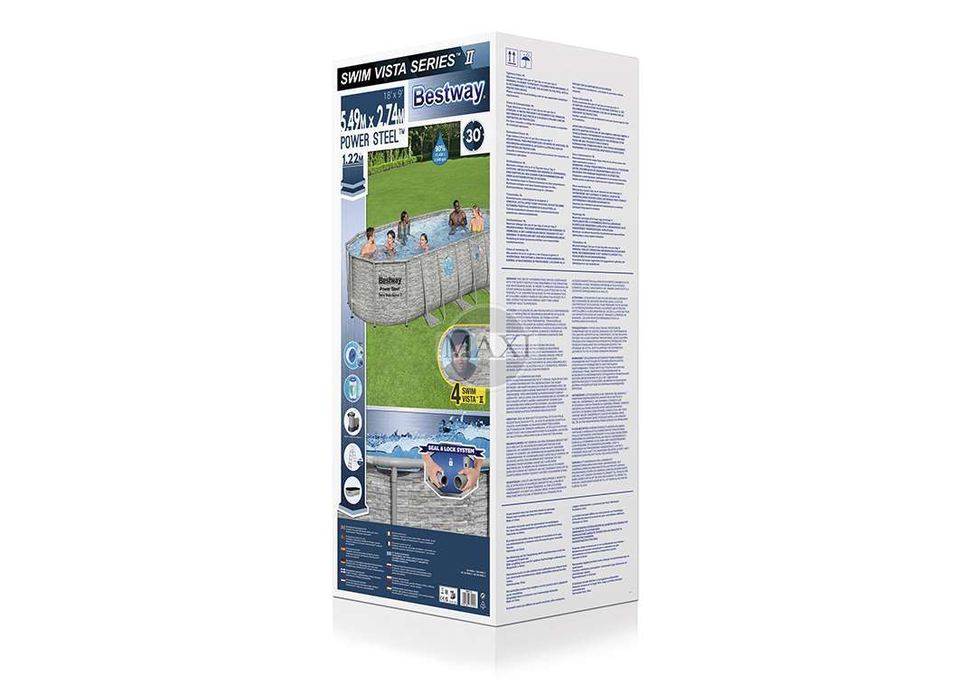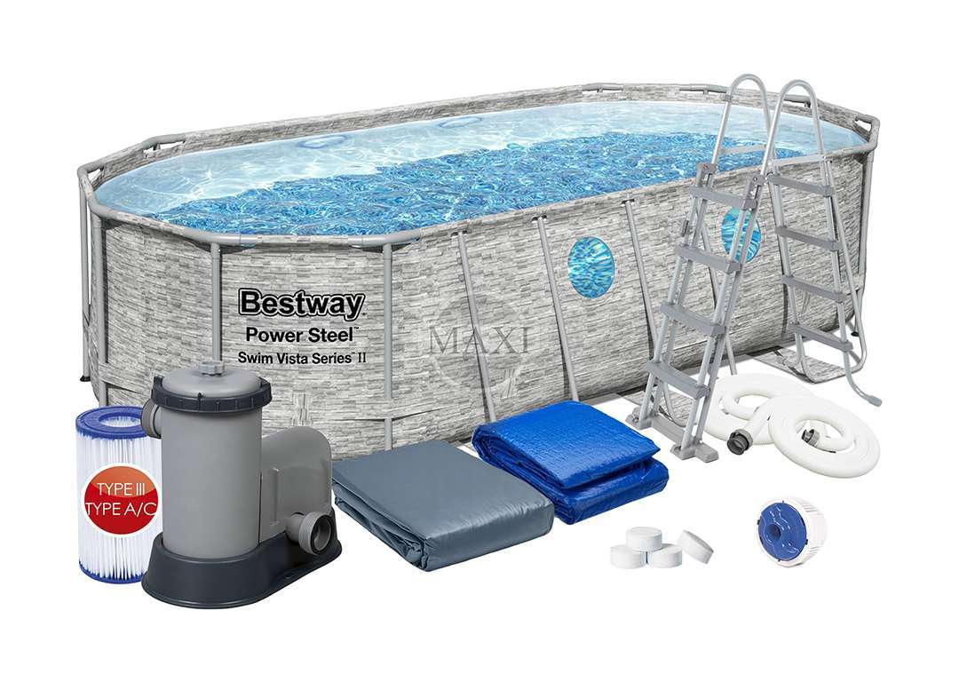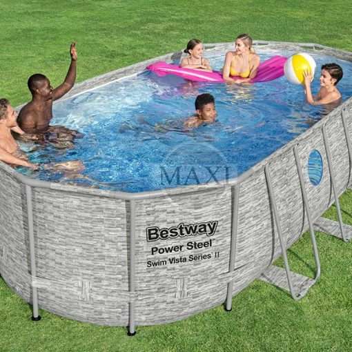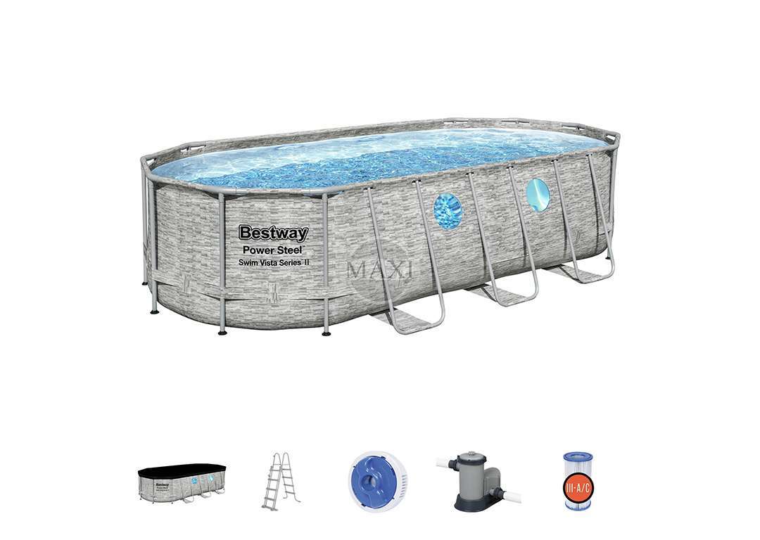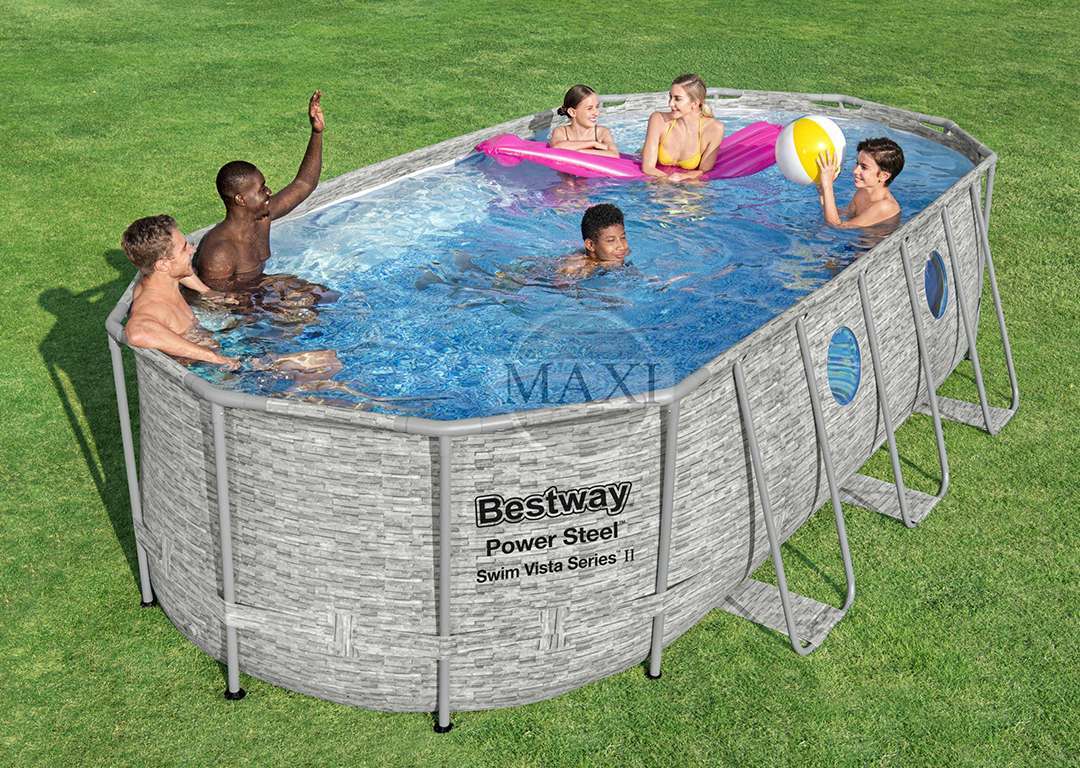 Bestway 56716 | Size 18.0 x 9.0 x 4.00 Ft | Power Steel Vista Series Oval Metal Frame Portable Ready-Made Swimming Pool