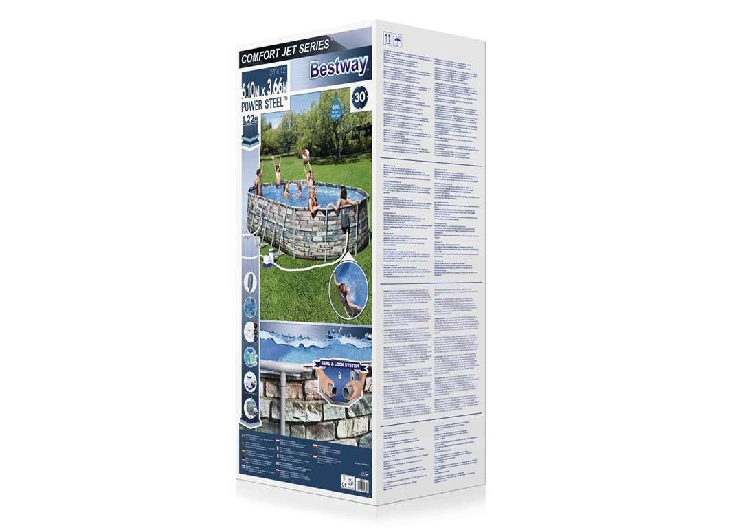 Bestway 56719 | Size 20.0 x 12.0 x 4.00 Ft | Power Steel Oval Metal Frame Portable Ready-Made Swimming Pool