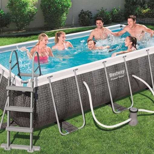 Bestway 56721 | Size 13.0 x 6.11 x 3.50 Ft | Power Steel Rectangular Metal Frame Portable Ready-Made Swimming Pool