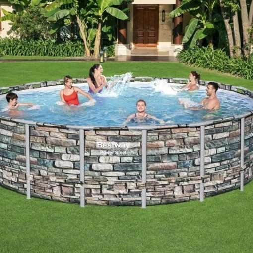 Bestway 56886 | Size 18.0 x 18.0 x 4.33 Ft | Power Steel Round Metal Frame Portable Ready-Made Swimming Pool