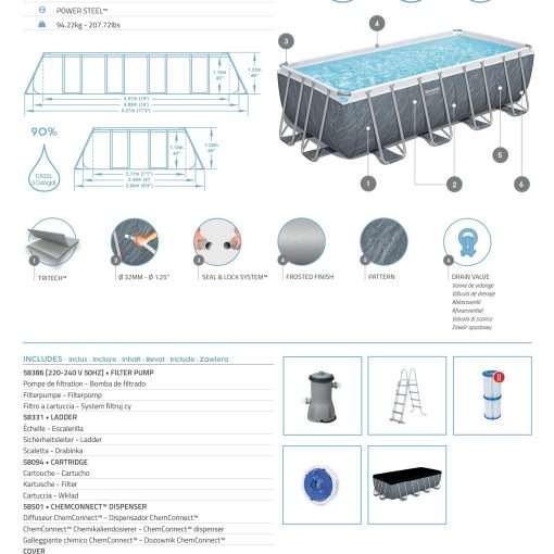 | Add-Ons | Cartridge Filter, Chem Connect Dispenser, Cover, Ladder |