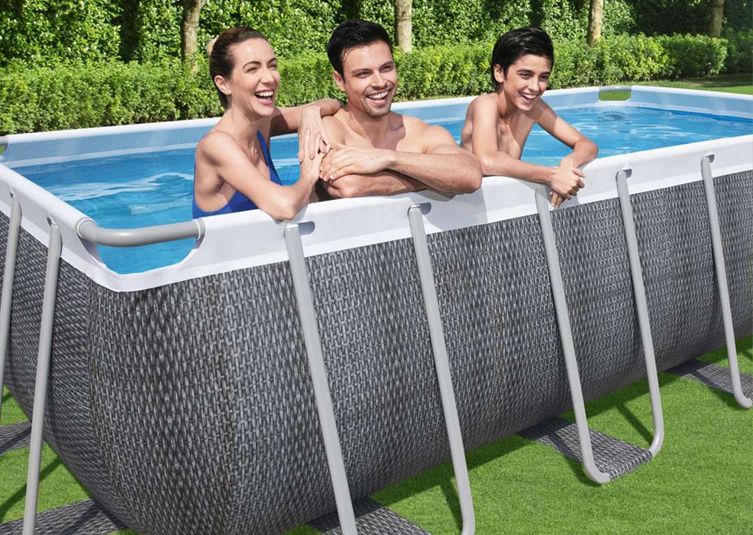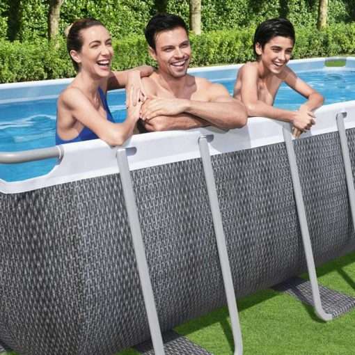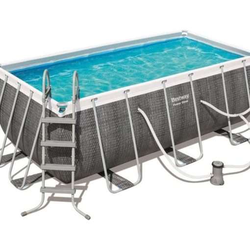 Bestway 56998 | Size 18.0 x 9.0 x 4.00 Ft | Power Steel Rectangular Metal Frame Portable Ready-Made Swimming Pool