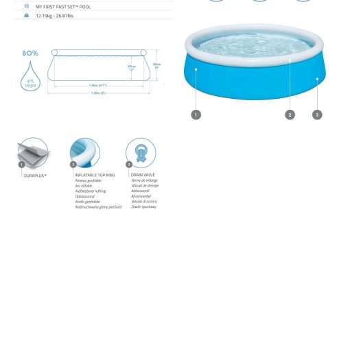 Bestway 57241 | Size 5.0 x 5.0 x 1.33 Ft | Inflatable Round Fast Set Portable Ready-Made Swimming Pool