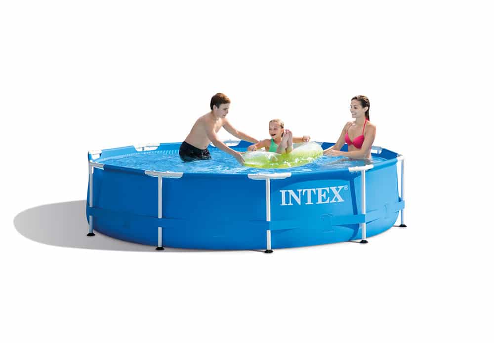 Beat the heat all summer with the Intex 10ft X 30in Metal Frame Pool. Engineered for strength, this pool is supported by strong, durable steel frames which are powder coated for rust resistance and beauty. Triple strong, SUPER-TOUGH laminated sidewalls are reinforced with an all-around band to keep frame legs firmly in place. This pool will make your backyard the place to be all summer as your family can relax and play. Ready for water in 30 minutes, – follow the instructions for easy set up, and enjoy the fun!
