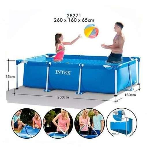 Intex 28271 | Size 8.53 x 5.25 x 2.13 Ft | Rectangular Metal Frame Portable Above Ground Swimming Pool
